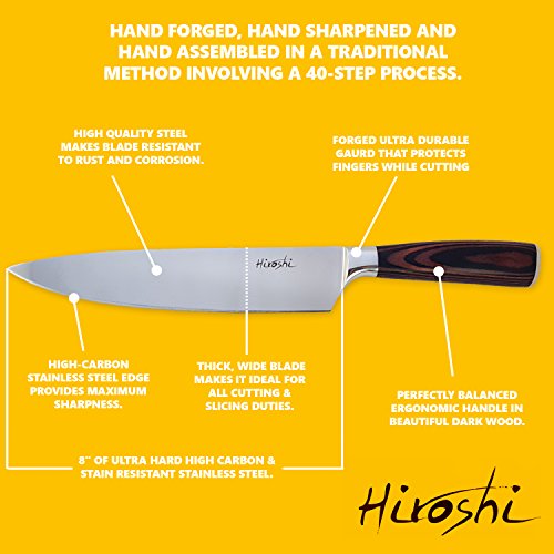 Hiroshi Nakamoto Premium Sushi and Sashimi Chefs Knife, High Carbon Steel and Stain Resistant Blade with a Beech Wood Handle, 6.5 Inch Blade