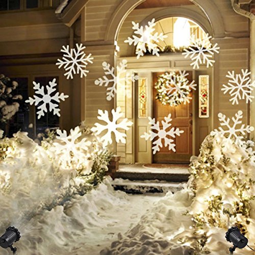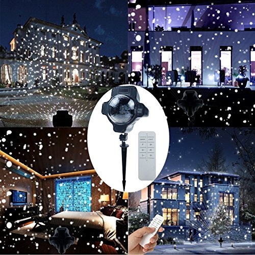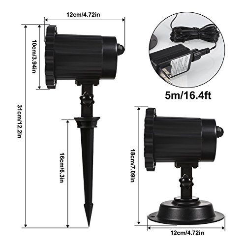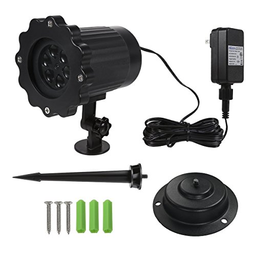 Ideal for Halloween, Christmas, Valentine's Day, St Patrick's Day, Memorial Day, Independence Day, Veterans Day and more Perfect for the holiday season Creates an instant atmosphere for parties and entertaining Specifications: External Color:Black Input Voltage: 110V-240V Output Voltage: 12V/500MA Color of snowflakes: White Working temperature: -22¨H to 95¨H Recommend irradiated angle: 30° Safety light source: 4 LEDs Waterproof grade: IP65 Item Certification: UL, CE, FCC, CSA, AWM listed Package included: 1 x LED Light Projector 1 x Ground Stake 1 x Wall Bese 1 x Plug Adapter 1 x User Instruction Tips: 1.We suggest use this product to projection the Light-colored wall or any other Light-colored surface, so the pattern will be clearer 2.For Longer lifespan, we suggest you Run it 4 hours and rest for 30 minutes in the summer. And runs 6 hours and rest for 30 minutes in the winter Warranty: 1 YEAR, If for any reason you are unhappy with any product by meda one, please do not hesitate to contact us.Feature