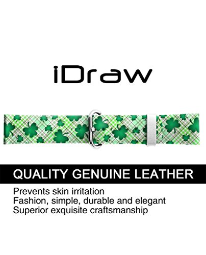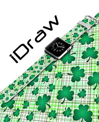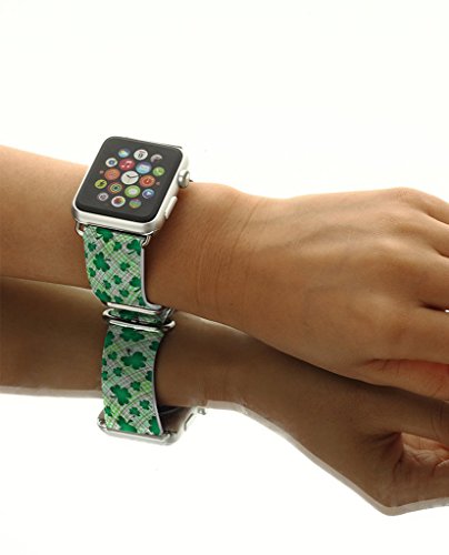 - Title : Apple Watch Strap iWatch Genuine Leather Replacement Watch Band Buckle Watch Strap Regular-length Design for Apple Watch for Woman (38mm) Green Shamrocks and Green Stripes