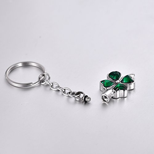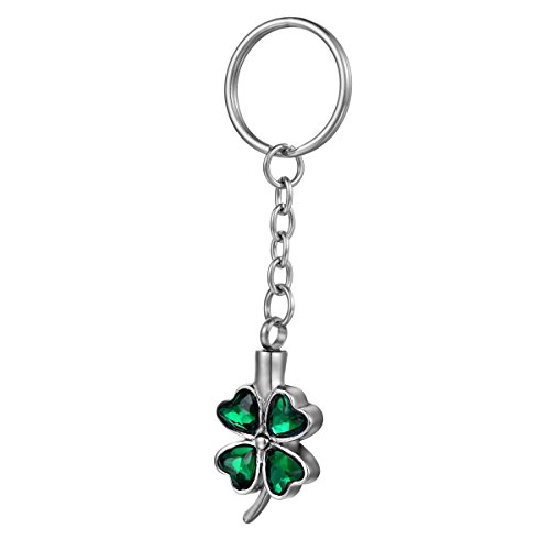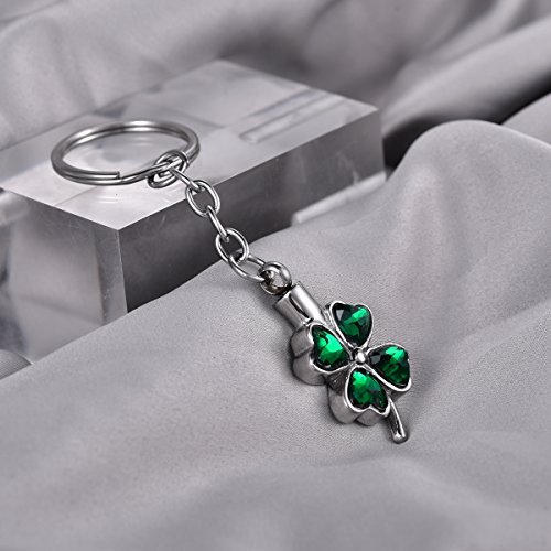 FCZDQ Memorial Keychain Luck Four Leaf Clover Urn Pendant for Ashes Cremation Jewelry