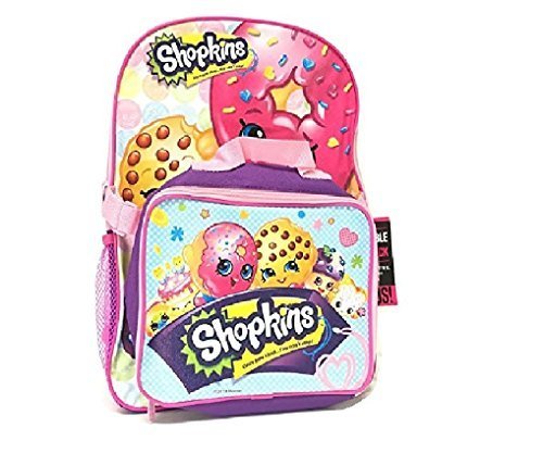 -. Title : Shopkins School Backpack Set 16" Large Backpack with Matching Lunch Bag-purple