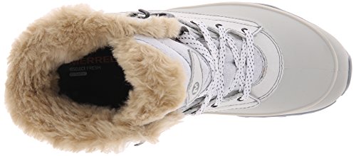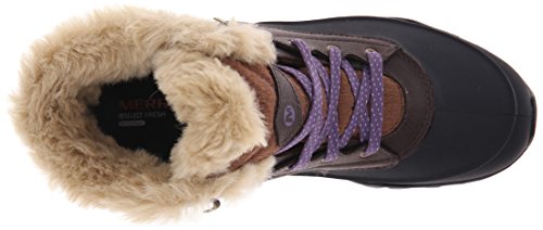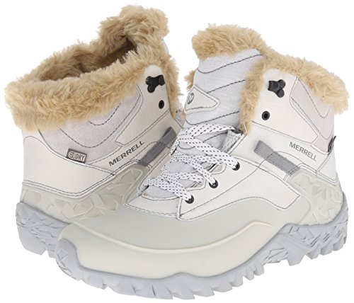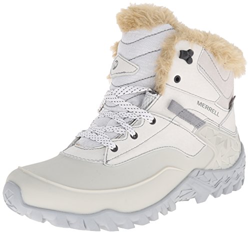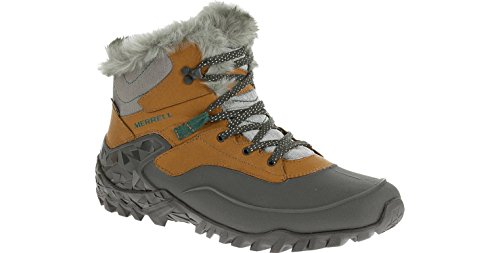 Studio : Merrell Footwear Publisher : Merrell Footwear Binding : Shoes Product Description Enjoy the amazing comfort and durability of the women's Merrell Fluorecein Thermo 6 Waterproof shoe. Crafted with PU coated waterproof, seam sealed leather and fabric upper, this shoe features a bellows tongue for extra comfort and prevent debris from entering the shoe. It has an M-Select DRY moisture wicking technology that keeps your foot cool all day long. With its M-SelectTM FRESH technology, this shoe offers long-lasting comfort. It has a 200g lightweight, M-SelectTM WARM low bulk insulation that delivers efficient warmth to keep you cozy. A faux fur collar and removable EVA footbed pampers your foot in comfort. There is a molded nylon arch shank that offers added stability. It also includes a Merrell air cushioned heel and an MBound TRKTM midsole that deliver exceptional impact absorption. For a finishing touch to this shoe, it has an M SelectTM GRIP outsole with 5mm lug depth that keeps your foot grippy on all kinds of surfaces. Choose the women's Merrell Fluorecein Thermo 6 Waterproof shoe for its ultimate performance and sturdiness. 0
