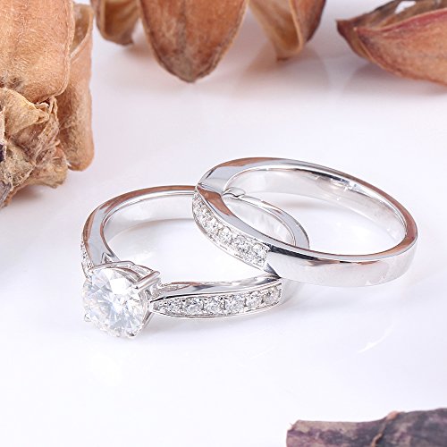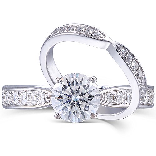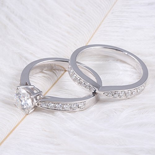 -. Title : 14k White Gold 2CTW H 7.5mm Round Cut Moissanite Solitare with Accents Wedding Ring Set (2 Piece Set)