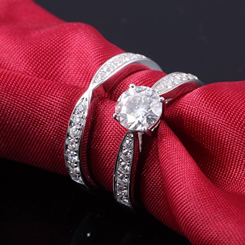 -. Feature : Total 2.0CTW,Center stones 1.5 ct (7.5mm) D-E -F moissanite Center Stone as beautiful and lasting as best quality diamonds!!! / Accents Stones:20 pieces of 1.7mm moissanites,2pcs 1.5mm and 4pcs 1.3mm moissanite.Total about 0.5ctw. / Moissanite is highest Craftsmanship Level and Jewelry Finish. Shine as same as the diamond, hardness almost on the same level. Most brilliant gem on earth. / Manufactured by Transgems.(Customization is acceptable with adorable price),Size #4--#12(leave a message of your size). / Lifetime Warranty and Certificate of Authenticity included,shipping in DHL.