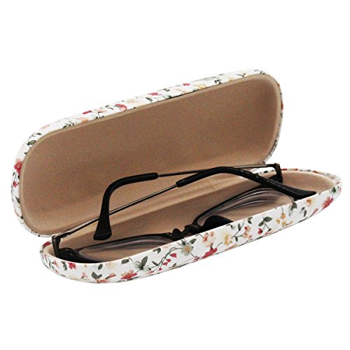 This clam shell spectacles protective case comes in three rich hues, each with an intricate floral design on the exterior and a contrasting brightly colored inner lining. Its small size and light weight make it easy to slip into a pocket or purse. Its durable exterior is sure not to break, and its inner lining is sure not to peel off. It is perfect for storing frames at home, the office, or on the go. It also make a perfect gift!
