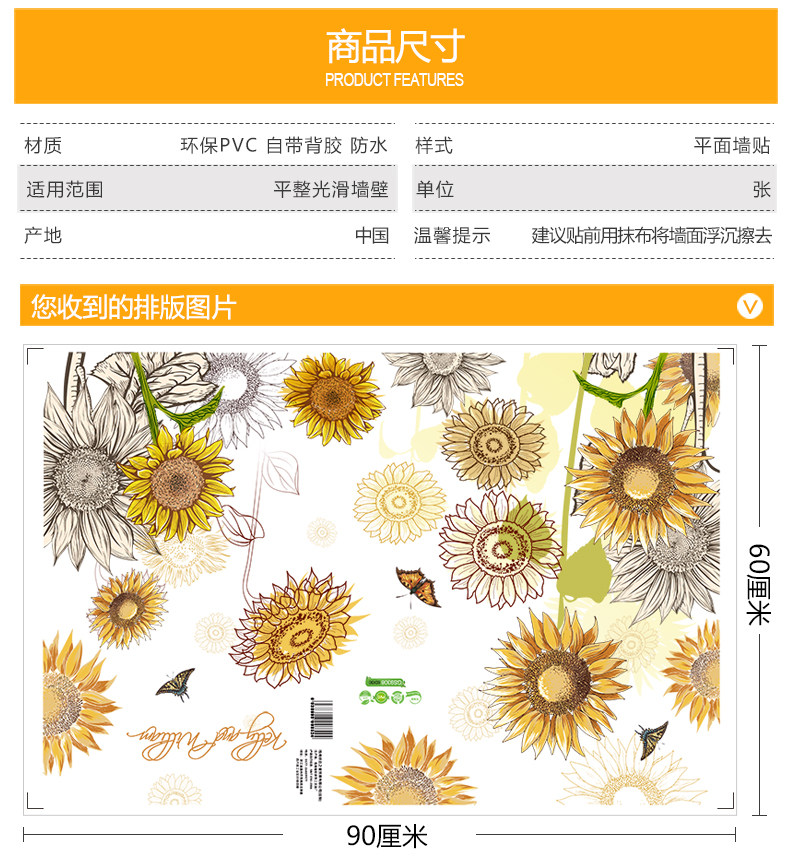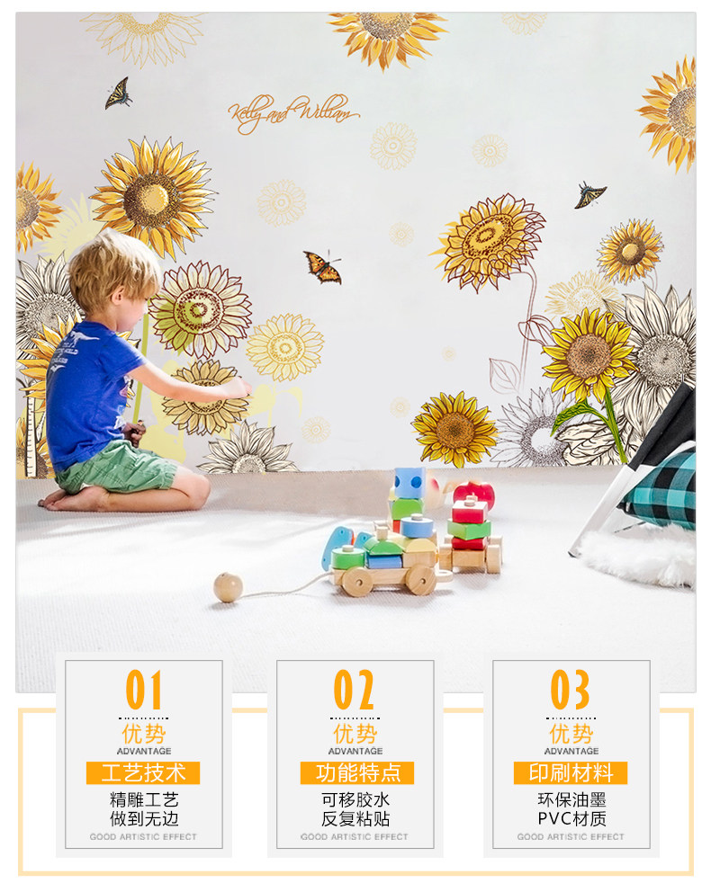 卡通墙贴向日葵贴画儿童房间装饰幼儿园教室布置墙上墙纸自粘壁纸