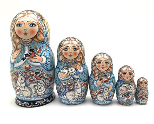 -. Feature : 5-piece Russian wooden nesting doll, hand carved and hand painted by Russian artist. Signed. / Size: 7.25" Tall, 3.25" Bottom diameter, set of 5 / Made in Russia from real wood. New condition from non-smoking home / Each item is hand painted and may have slight differences in details and color. / Quick (1-2 day) handleing time. Shipping from Los Angeles, CA. Combine shipping: shipping for an each item from BuyRussianGifts store is just $0.99.