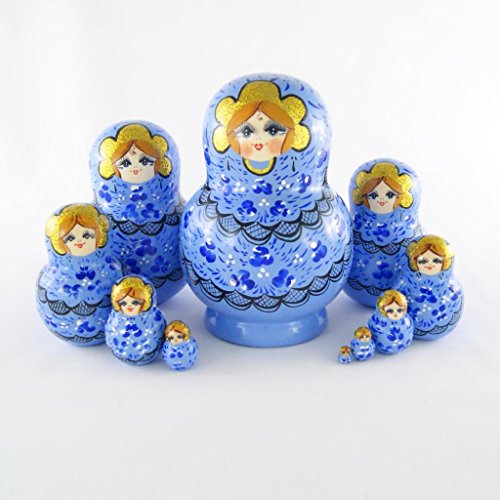 -. Title : Vaskin Gifts Russian Nesting Dolls Wooden Handpainted Large 10 pcs Sky Blue with Ultramarine
