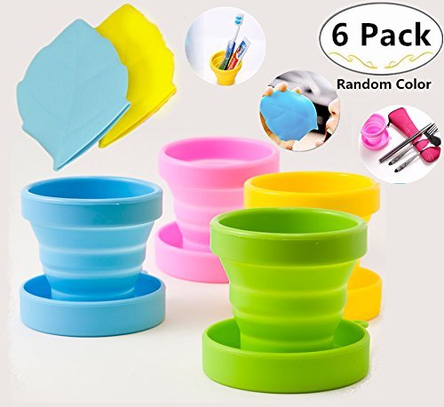 4 Silicone Collapsible Travel Cups & 2 Silicone Leaf Shaped Travel Cups for Bonus, Magnolora Foldable Expandable Drinking Mug with Lid for Hiking Camping Outdoor Sports, BPA Free & FDA Approved