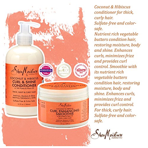 A curly hair care set that sets your head straight! Tame your heavy, frizzy, lackluster curls with Shea Moisture's Coconut & Hibiscus Conditioning kit. This 2-for-1 set brings you ultra powerful frizz control and restorative benefits derived from natural, organic, sulfate-free ingredients. Our conditioner comes in a convenient pump dispenser and quenches lifeless locks with hydrating silk proteins, leaving hair silky, shiny, and totally manageable. Finish off your 'do with the versatile Curl Enhancing Smoothie, a leave-in cream designed to detangle and define wet or dry strands. With notes of creamy coconut and floral hibiscus, your bouncy, beautiful curls will have heads turning everywhere you go!