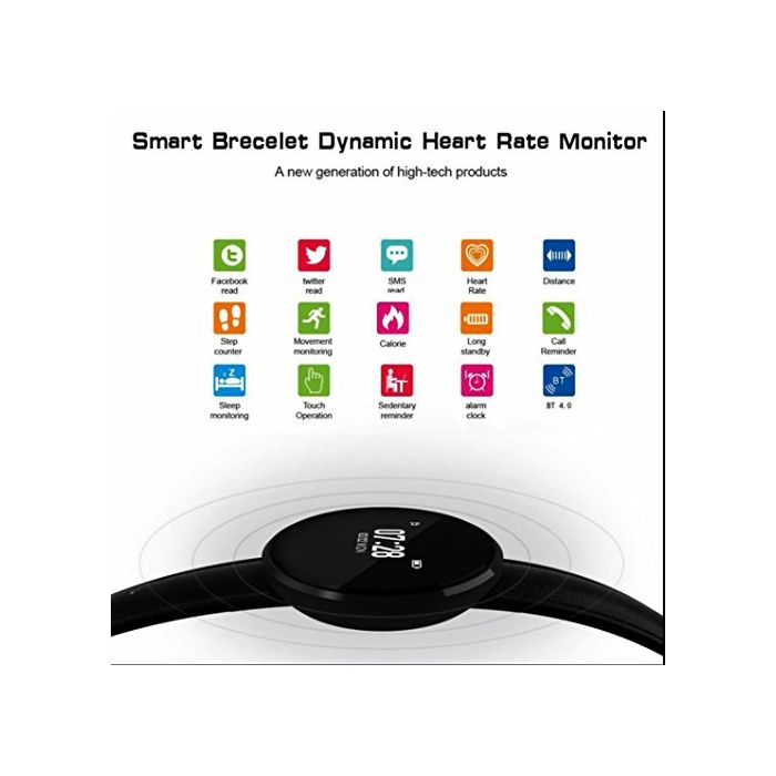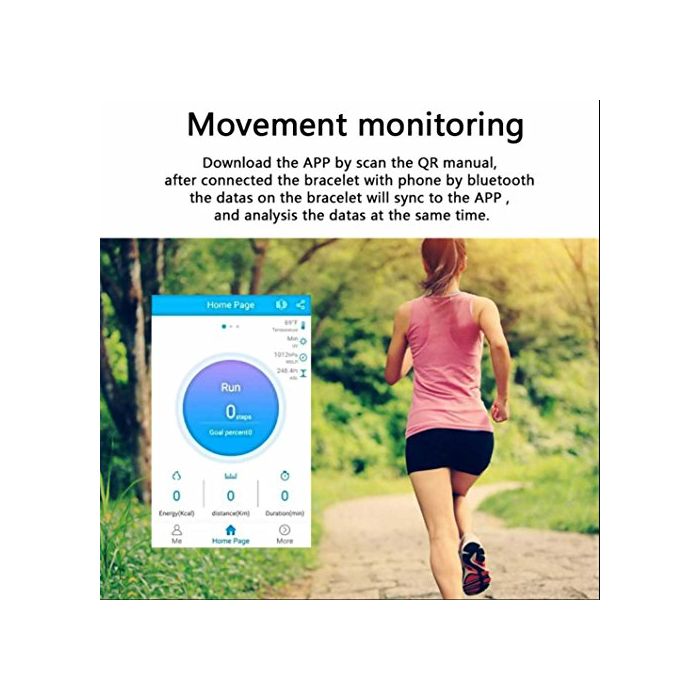다기능 스마트 리스트 밴드: 생리 관리,활동량계,혈압계,보수계-페도미터,Line통지,착신 통지,메일 통지,수면계,칼로리 계산,카운트다운,스톱워치,카메라 셔터 기능,안정도가 # 주의,알람,날짜 표시,휴대 찾기,운동 데이터 분석 등의 기능 를 가지고 있습니다