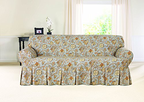 -. Binding : Misc. -. Brand : Surefit -. Color : Sage -. EAN : 0047293443527 -. Feature : 100% Cotton / Relaxed Fit - Woven for a slightly loose and casual look with adjustability features that can be tucked or tied for a more tailored profile. / Fits Box cushion. / Wrinkle resist finish / Corded arm and ruffle. / Fabric covered button and loop back corner pleat closure. -. Label : Sure Fit Inc. -. Manufacturer : Sure Fit Inc. -. Model : SF44352 -. MPN : SF44352 -. PackageQuantity : 1 -. PartNumber : SF44352 -. ProductGroup : Home -. ProductTypeName : HOME -. Publisher : Sure Fit Inc. -. Size : Loveseat -. Studio : Sure Fit Inc. -. Title : Sure Fit Tennyson 1-Piece - Sofa Slipcover - Topaz (SF44352) -. UPC : 047293443527