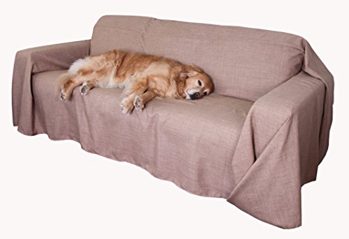 -. Feature : Keep your couch clean. Protect from spills, accidents, dirt and fur / High quality commercial upholstery grade woven polyester fabric with a bonded dirt barrier backing / Soft and luxurious but tough and durable. Drapes easily and smoothly. Stain and wrinkle resistant / Simply throw over your couch, tuck it in between the cushions and the wrap will stay in place / Easy care machine wash and dry.