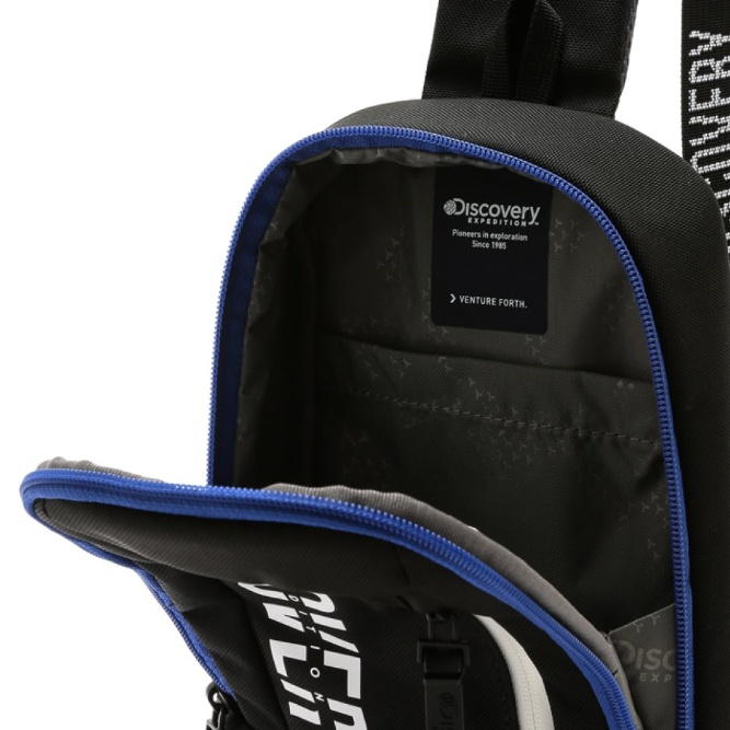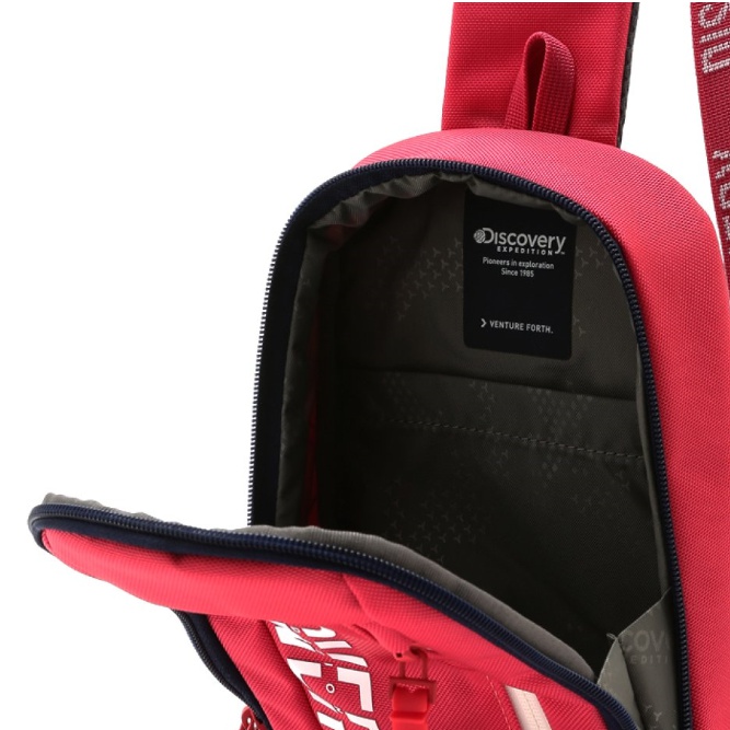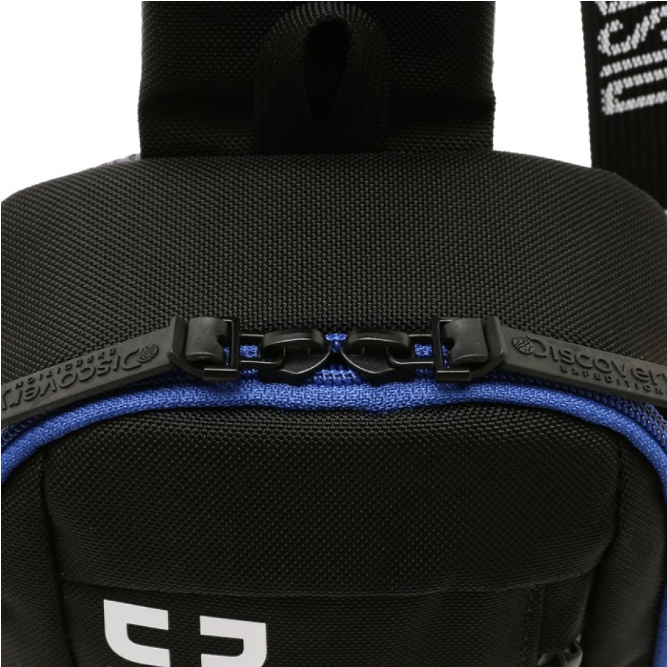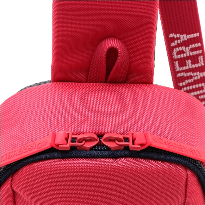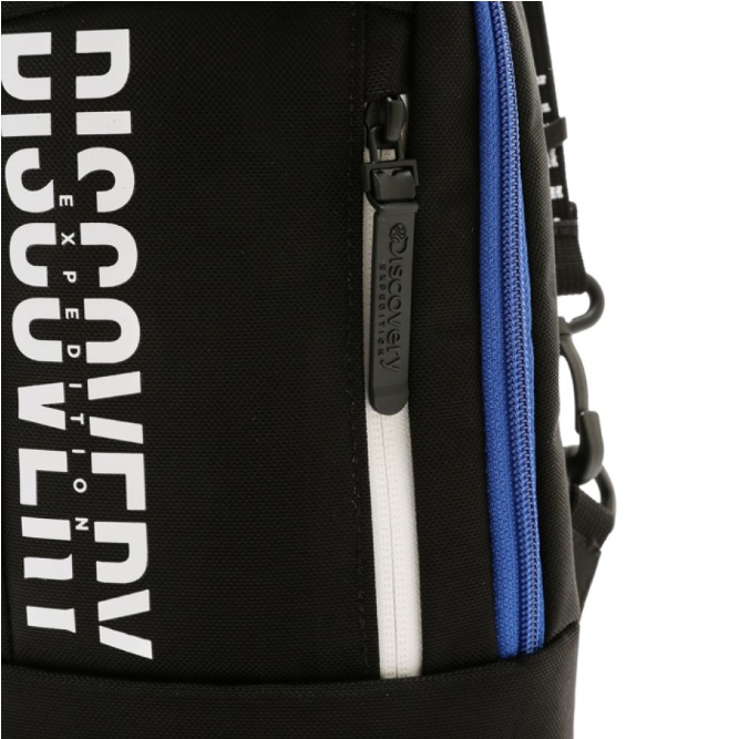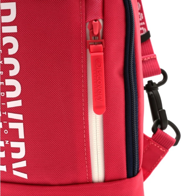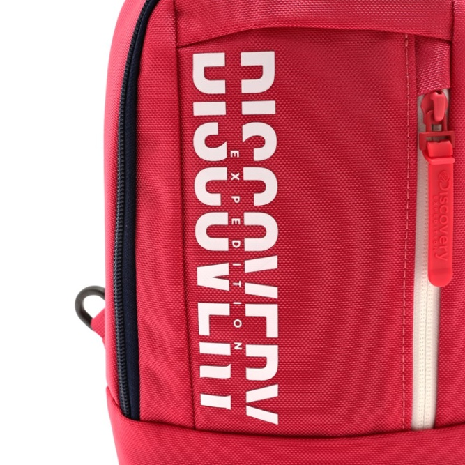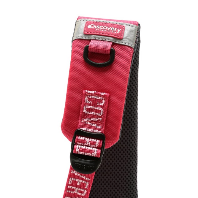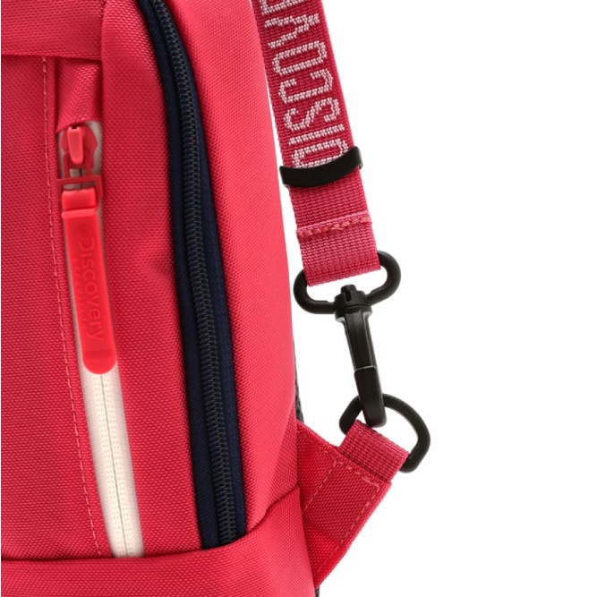 - 디스커버리 워딩 웨빙이 포인트로 돋보이며 등판쪽 하단 좌우에 D링을 적용하여 사용자 편의에 맞게 원하는 방향으로 착용 가능하게 함.