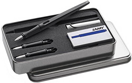 -. Binding : Office Product -. Brand : Lamy -. ClothingSize : One-Size -. Color : Black -. Department : mens -. EAN : 5056036650608 -. Feature : A wonderful calligraphy set for any enthusiastic writer. / Features a LAMY Joy fountain pen with 3 interchangable nibs units and a pack of LAMY T 10 blue ink cartridges. / Barrel: Lacquer; Cap: Aluminium. / Compatible with LAMY T 10 ink cartridges. / Arrives in a stylish metal presentation case. -. Model : 1317713 -. MPN : 1317713 -. PartNumber : 1317713 -. ProductGroup : Office Product -. ProductTypeName : WRITING_INSTRUMENT -. Size : One-Size -. Title : Matte Black Joy 3 Nib Blue Ink Fountain Pen Set by Lamy