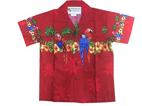 Boy's Hibiscus Parrot Cruise Luau Hawaiian Aloha Shirt (6, RED)