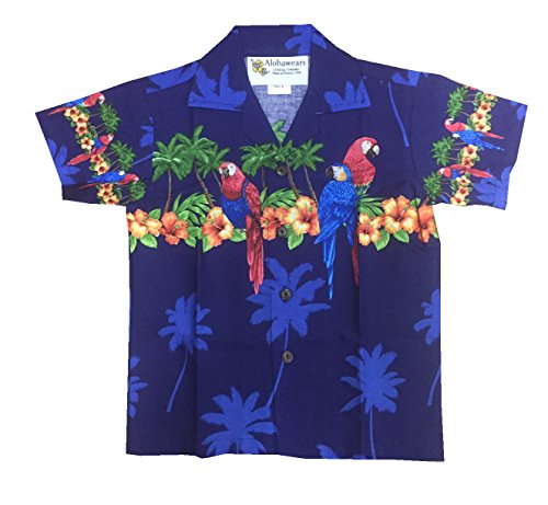 Boy's Hibiscus Parrot Cruise Luau Hawaiian Aloha Shirt (8, NAVY)