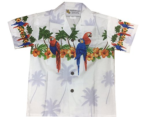 Boy's Hibiscus Parrot Cruise Luau Hawaiian Aloha Shirt (6, WHITE)
