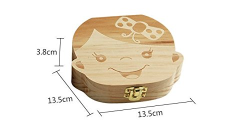 There are one baby tooth keepsake for boys and one for girls. The weight is about 6 ounces each. The size is 4.8"*4.9"*1.2" each. Instructions: After your child turn 5, they will start to lose their baby teeth; Make sure you ask the dentist to get the teeth back; Boil teeth for at least 5 minutes to clean the teeth; After air dry, put teeth in corresponding holes of the baby teeth keepsake box. 0 |