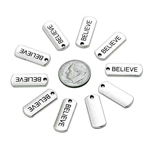 20 Pieces Inspirational Believe Tags Lucky Charms Findings for Jewelry Pendant Necklace Making 21 X 8mm