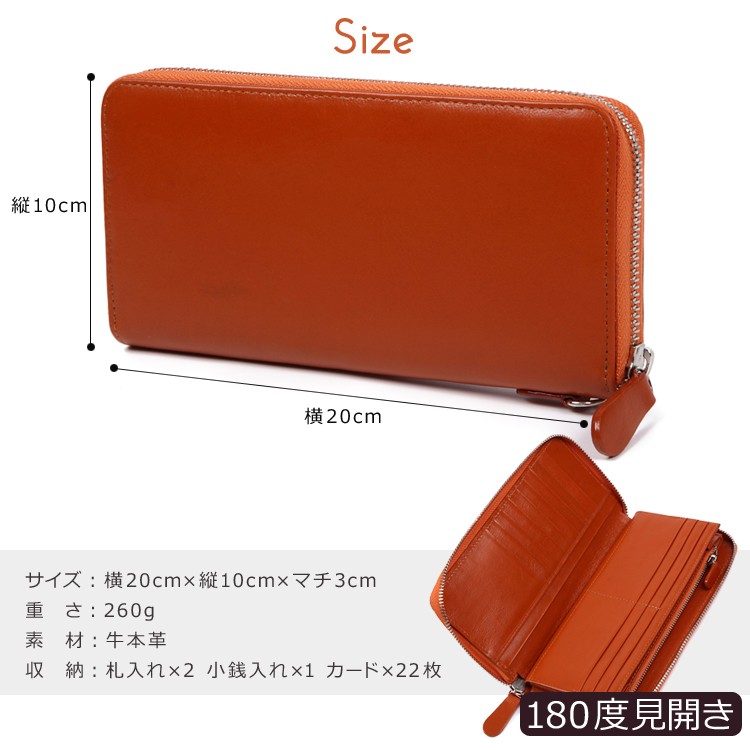 商品説明:■【牛本革】を使用したラウンドファスナー長財布です。■シンプルで落ち着いた飽きのこないデザインとなっておりますので老若男女ご使用頂けます!■ファスナーは安心・信頼のYKK製を使用しております。■カードは22枚収納可能と十分な容量です!■軟らかい革を使用する事により180度開くことが出来、使い勝手は抜群です! サイズ:横20cm×縦10cm×マチ3cm 重さ:260g 素材:牛本革 収納:札入れ×2 小銭入れ×1 カード×22枚