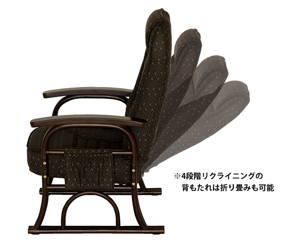 ●背もたれは4段階のギア式リクライニングで角度調節が可能です。