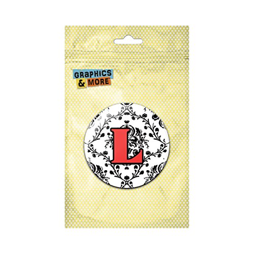 Letter L Initial Damask Elegant Red Black Pinback Button Pin Badge