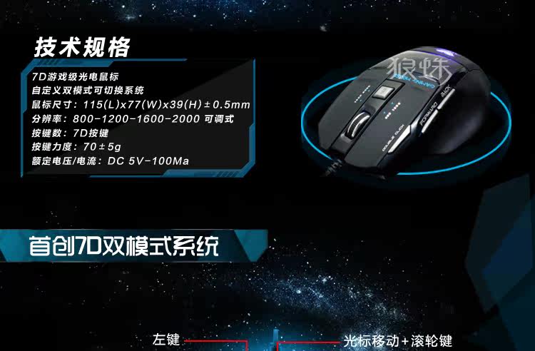 狼蛛 弑魂鼠标 有线鼠标 游戏鼠标 USB笔记本电脑鼠标