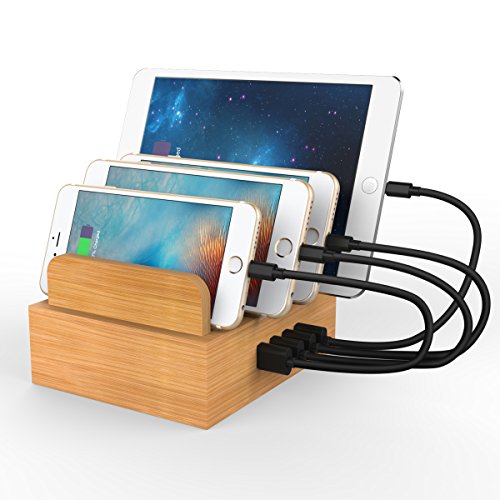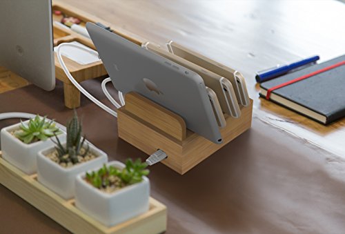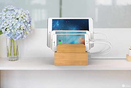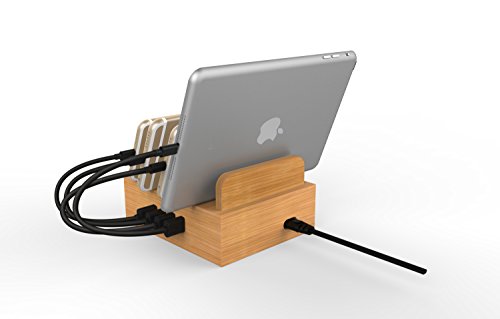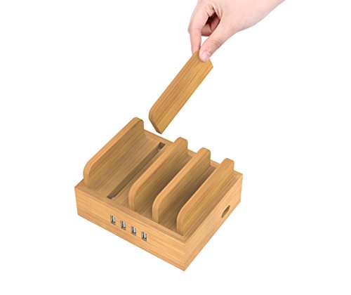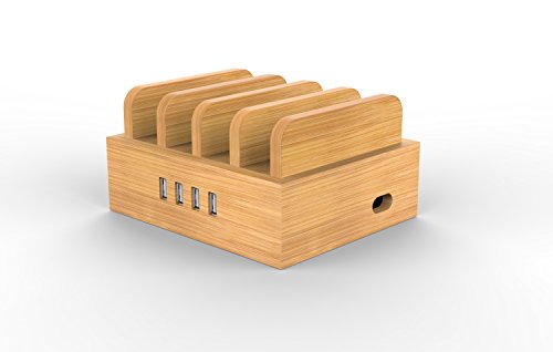 NEXGADGET 4 Port USB Charging Station [24W 2.4A MAX] Natural Bamboo Organizer Charging Stand / Dock / Holder For iOS & Android Smartphones, Tablets, Camera, and Other USB Powered Devices