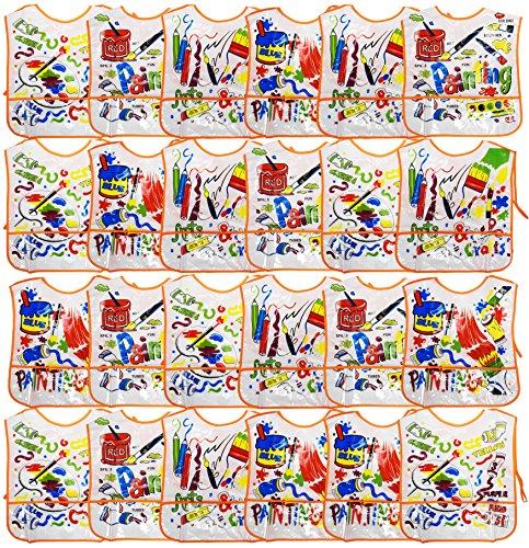 Make sure your little artist stays clean while breaking free their creativity! These adorable child's smocks are perfect for any arts and crafts anywhere! The bright and beautiful designs are eye catching and and paint themed! The pockets help keep the mess contained and keep the art supplies in easy reach!