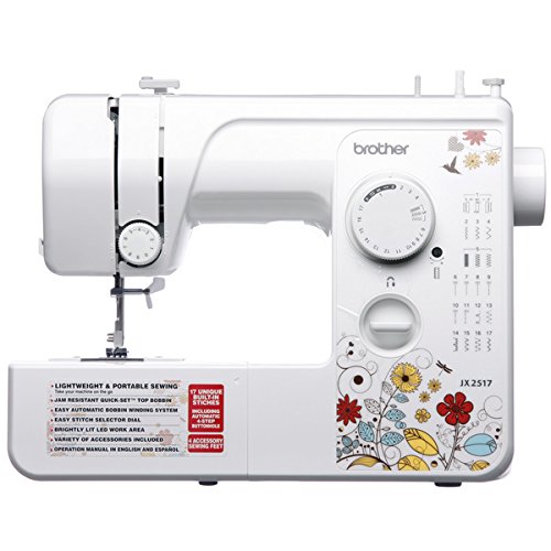 -. Feature : 17 Built-in Stitches, 38 Stitch Functions / Free Arm Top Load Bobbin / Brother Jx2517 / Brightly Lit LED Work Area / 25 year Limited Manufacturer
