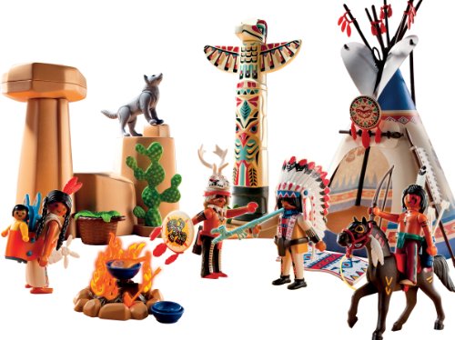 -. Feature : Explore Native American culture with the Native American Camp with Totem Pol / Kids can tend to the fire, relax in the teepee, dress the figures in traditional garb, and more / At the center of the camp stands the mighty totem pole with intricate engravings / Figures can bend, sit, stand and turn their heads / Includes five figures, teepee, totem pole, one horse, one wolf, fire pit, cactus, surrounding landscape, and additional accessories