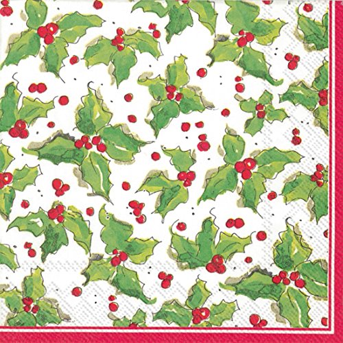 Ideal Home Range 20-Count Rosanne Beck Watercolor Holly Paper Luncheon Napkins, Multicolored