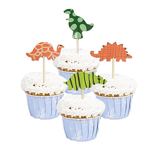 LITTLE FEATHER 24 Pcs Dinosaur Cupcake Toppers Cupcake Picks Food Fruit Toppers for Baby shower, kids theme Party