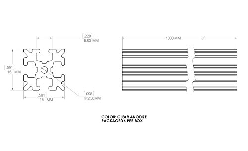 OpenBeam 1515 x 1 meter, 6 Pack, Clear Anodized