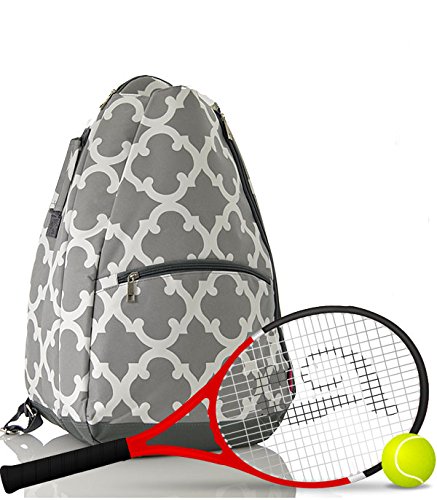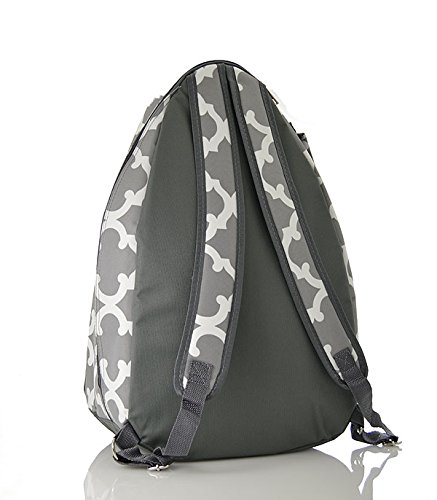 Studio : BNB Publisher : BNB Binding : Misc. Product Description Geometric Print Tennis Backpack . 15″(L) X 20″(H) X 7″(W) . Material : canvas . Store accessories in the front zip pocket . Large exterior pocket with easy embroidery access . 6″ rear zip pocket . One wall zipper and two pouch pockets inside . Removable tow bows deco included . Padded backpack straps provide extended comfort . Side handle 0