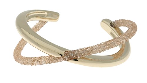 Create a stunning and contemporary look with the new Crystaldust Cross Bangle by Swarovski. This modern bangle offers a unique crossover silhouette crafted in gold PVD plating with a tube of Rolled Crystal Rocks in a glittering brown color mix. This bracelet measures 2 1/2 inches in diameter.Feature