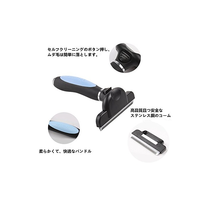 원본상품명:MIU PET ペット用 ブラシ ムダ毛取り ?け毛取り グル?ミング ワンプッシュ付き ツ?ル 短毛と長毛 10.5*14.5cm(ブル?)