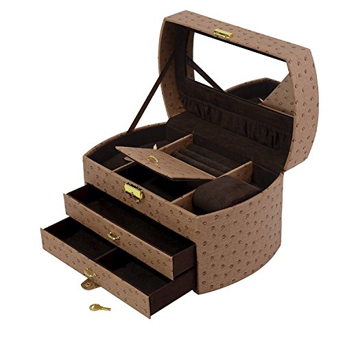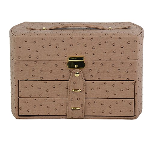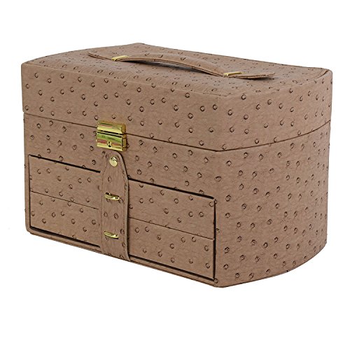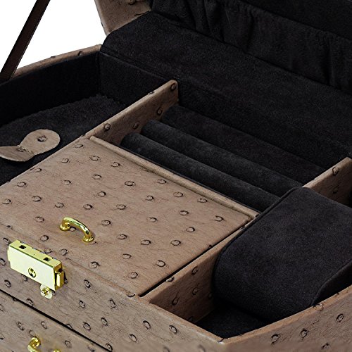 Ostrich Synthetic Leather Organizer Jewelry Box for Storage and Travel with Lock and Key - Dimensions: 11.5 x 7 x 7 Inch