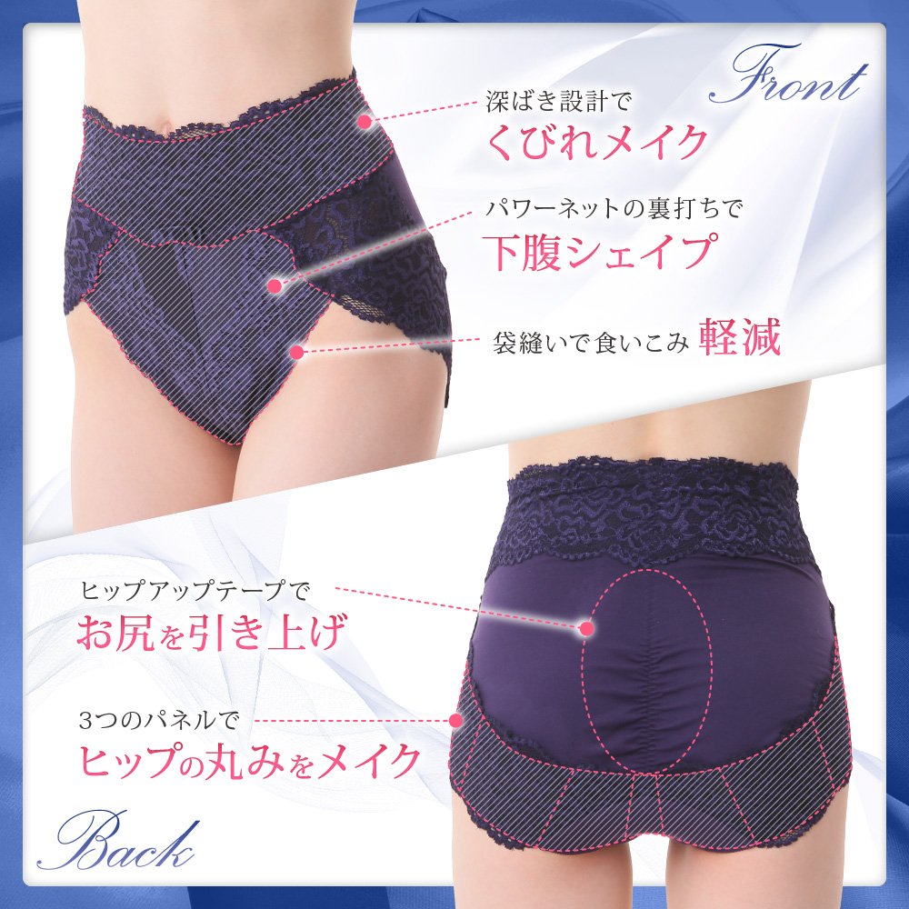 ● Hip-up tape at the center of the back lifts up the hips and fits to make clean roundness by adding gather specifications.