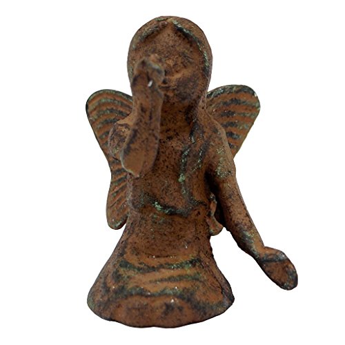 Cast Iron Small Garden Fairy Statue with Bird, Angel Pixie Figure