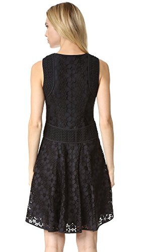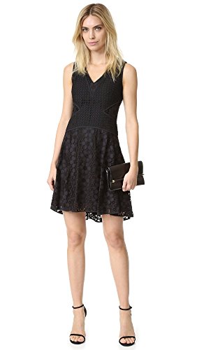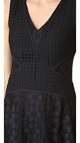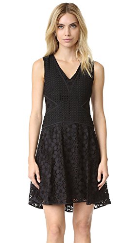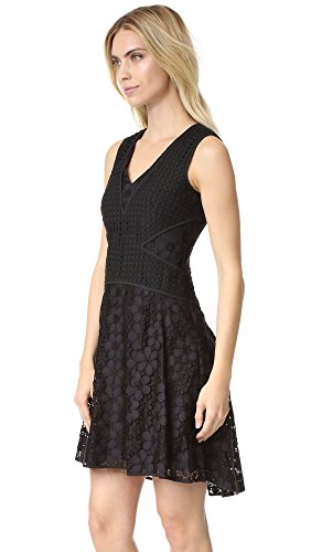 A mixed texture Diane von Furstenberg dress, styled with a fitted crochet bodice and an airy lace skirt. Deep V neckline. Sleeveless. Hidden side zip. Lined.