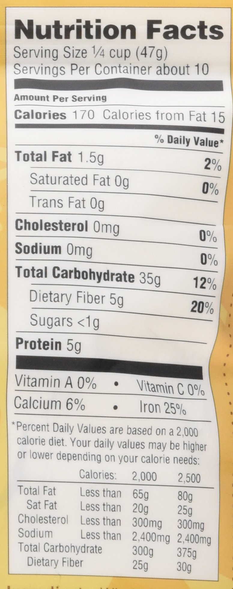 Dietary fiber: 5 g