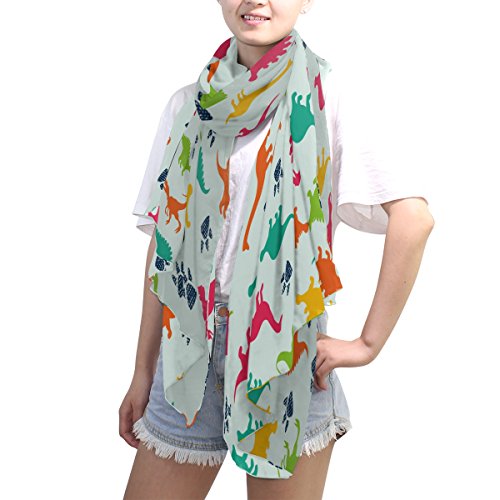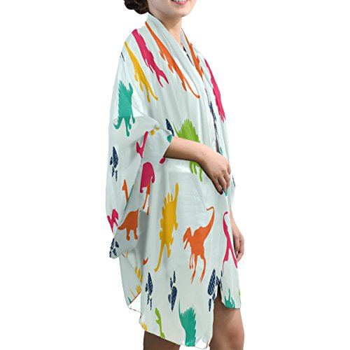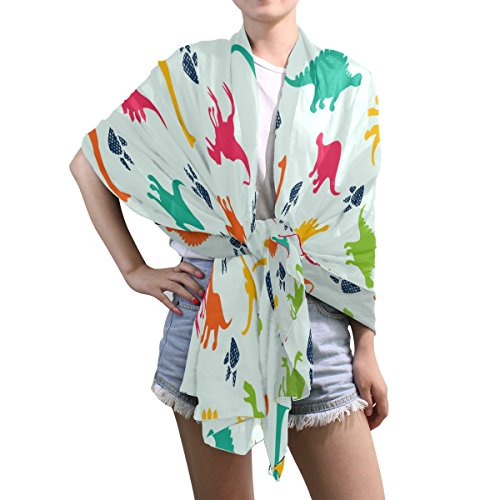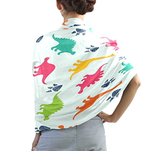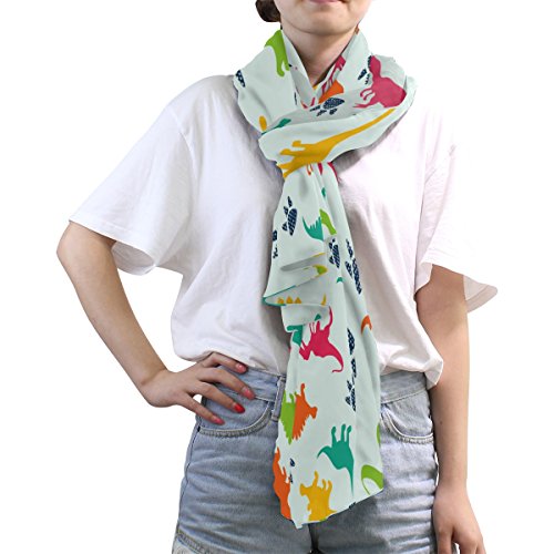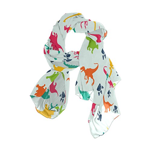 (ALAZA)/Accessories/Cold Weather Accessories/DIRECT FROM USA/ALAZA Cartoon Paw Print Dinosaur Chiffon Silk Long Scarf Shawl Wrap