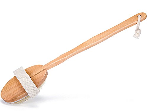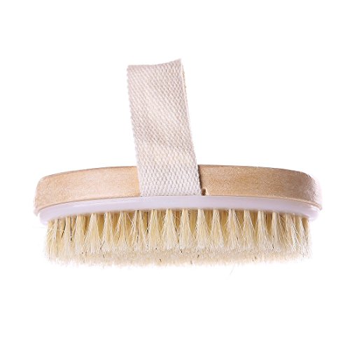 Wooden Shower Body Brush with Boar Bristle Made By Mira with Detachable Hand Grip Handle, Perfect for Dry Skin Brushing, Shower and Bath, an Essential...