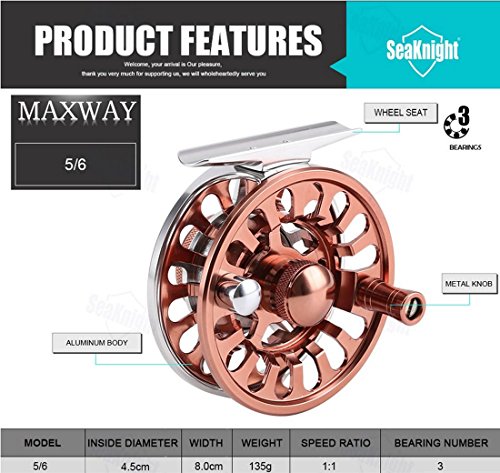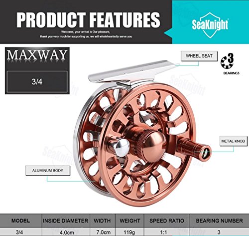 -. Feature : SeaKnight® MAXWAY fly reel is built tough for saltwater fly fishing and freshwater fly fishing for gamefish.Ergonomic Designed for Comfortable / SeaKnight® MAXWAY Fly Reels are smooth, amazing fly reel center disk drag unit is o-ring sealed to keep out water and sand. / The exceptional SeaKnight® MAXWAY waterproof fly fishing reel includes a fantastic CNC precision machined frame and spool, 1:1 gear ratio, 3 Ball Bearings. / This balanced design, ultra-light large arbor fly fishing reel comes in 4 sizes: 3/4 70 mm dia, 5/6 80 mm dia, 7/8 90 mm dia,9/10 100 mm dia. / Adjustable Click Drag System.Very light-weight, and easy to dismantle.