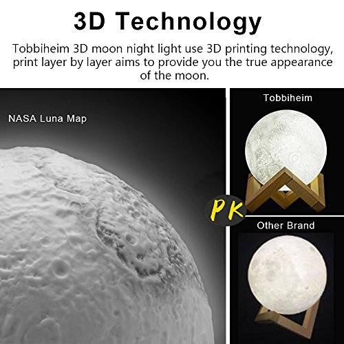 -. Title : Tobbiheim 5.1 Inch Night Light LED 3D Printing Moon Lamp, Touch Sensor LED Warm and Cool White Dimmable Touch Control Brightness with USB Charging, Rechargeable Home Decorative Novelty Lunar Light