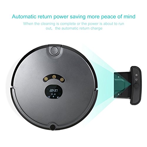 Automatische Aufladung. Der Reiniger sucht die Dockingstation zum automatischen Laden im Falle einer schwachen Batterie wahrend der Reinigung.