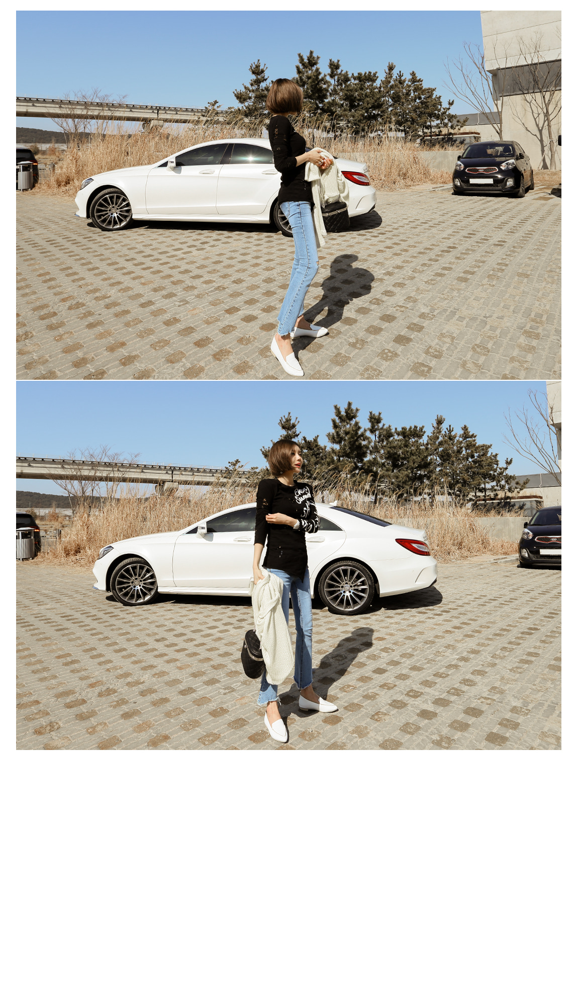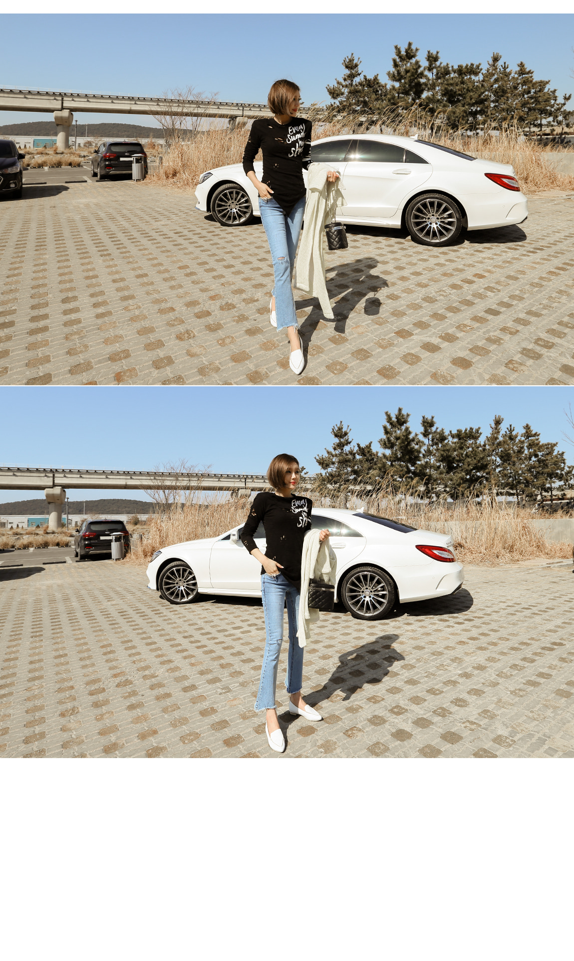 언발란스한 밑단으로 유니크한 포인트를 주었어요