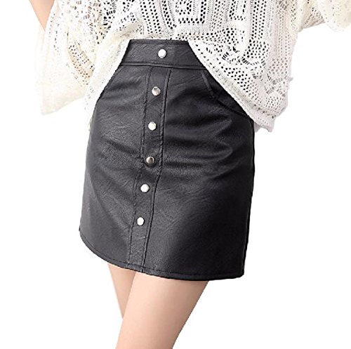 -. Title : kazan レディース PU ソフト フェイク レザー タイト フロント ボタン ミニ スカート